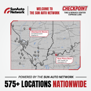 In Kentucky, the new Plaza Tire Service represents the brand’s 89th overall and 8th in the state, extending access to automotive care in the region. In Illinois, the addition of a Checkpoint Tire & Service location and a Checkpoint Express Lube Center bring Sun Auto’s total to 15 locations in the state, while adding express oil changes and maintenance for fast, convenient options and complete service.